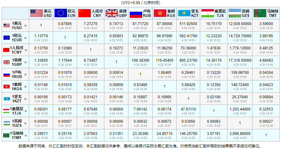 注:根据塔国家银行4月29日汇率,1元人民币兑1.45索莫尼。